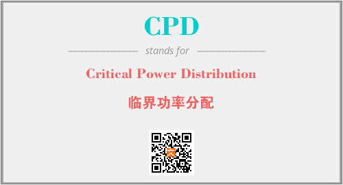 英文缩略词“CPD”经常作为“Critical Power Distribution”的英文缩写来使用,中文表示:“临界功率分配”。本文将详细介绍英文缩写词CPD所代表英文单词,其对应的中文拼音、详细解释以及在英语中的流行度。此外,还有关于缩略词CPD的分类、应用领域及相关应用示例等。