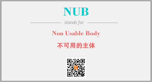 上述内容是“Non Usable Body”作为“NUB”的缩写,解释为“不可用的主体”时的信息,以及英文缩略词NUB所代表的英文单词,其对应的中文拼音、详细解释以及在英文中的流行度和相关分类、应用领域及应用示例等。
