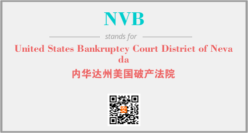 英文缩略词“NVB”经常作为“United States Bankruptcy Court District of Nevada”的英文缩写来使用,中文表示:“内华达州美国破产法院”。本文将详细介绍英文缩写词NVB所代表英文单词,其对应的中文拼音、详细解释以及在英语中的流行度。此外,还有关于缩略词NVB的分类、应用领域及相关应用示例等。