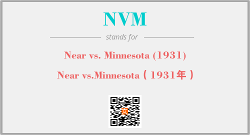 上述内容是“Near vs. Minnesota (1931)”作为“NVM”的缩写,解释为“Near vs.Minnesota(1931年)”时的信息,以及英文缩略词NVM所代表的英文单词,其对应的中文拼音、详细解释以及在英文中的流行度和相关分类、应用领域及应用示例等。