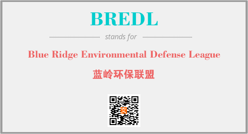 上述内容是“Blue Ridge Environmental Defense League”作为“BREDL”的缩写,解释为“蓝岭环保联盟”时的信息,以及英文缩略词BREDL所代表的英文单词,其对应的中文拼音、详细解释以及在英文中的流行度和相关分类、应用领域及应用示例等。
