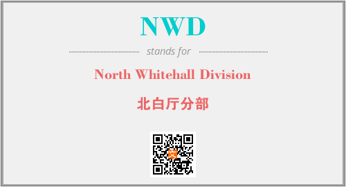 上述内容是“North Whitehall Division”作为“NWD”的缩写,解释为“北白厅分部”时的信息,以及英文缩略词NWD所代表的英文单词,其对应的中文拼音、详细解释以及在英文中的流行度和相关分类、应用领域及应用示例等。