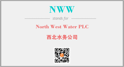 上述内容是“North West Water PLC”作为“NWW”的缩写,解释为“西北水务公司”时的信息,以及英文缩略词NWW所代表的英文单词,其对应的中文拼音、详细解释以及在英文中的流行度和相关分类、应用领域及应用示例等。