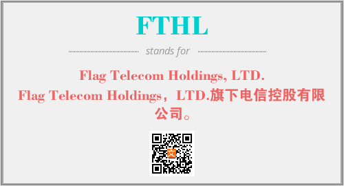 上述内容是“Flag Telecom Holdings, LTD.”作为“FTHL”的缩写,解释为“Flag Telecom Holdings,LTD.旗下电信控股有限公司。”时的信息,以及英文缩略词FTHL所代表的英文单词,其对应的中文拼音、详细解释以及在英文中的流行度和相关分类、应用领域及应用示例等。
