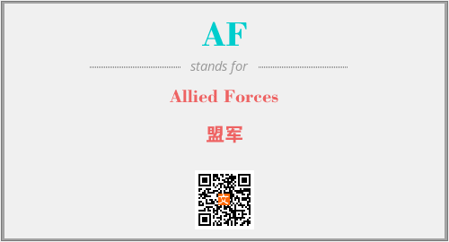 上述内容是“Allied Forces”作为“AF”的缩写,解释为“盟军”时的信息,以及英文缩略词AF所代表的英文单词,其对应的中文拼音、详细解释以及在英文中的流行度和相关分类、应用领域及应用示例等。