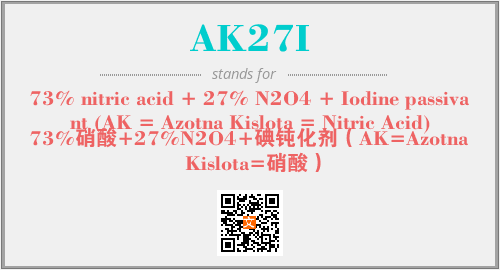"AK27I - 73%硝酸+27%N2O4+碘钝化剂(AK=Azotna Kislota=硝酸) ." [引用日期]. <https://www.suoxie123.com/a/1C566.html>.