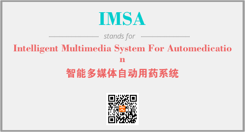 英文缩略词“IMSA”经常作为“Intelligent Multimedia System For Automedication”的英文缩写来使用,中文表示:“智能多媒体自动用药系统”。本文将详细介绍英文缩写词IMSA所代表英文单词,其对应的中文拼音、详细解释以及在英语中的流行度。此外,还有关于缩略词IMSA的分类、应用领域及相关应用示例等。