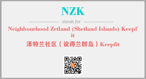上述内容是“Neighbourhood Zetland (Shetland Islands) Keepfit”作为“NZK”的缩写,解释为“泽特兰社区(设得兰群岛)Keepfit”时的信息,以及英文缩略词NZK所代表的英文单词,其对应的中文拼音、详细解释以及在英文中的流行度和相关分类、应用领域及应用示例等。