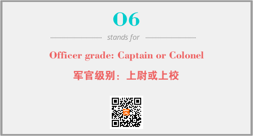 上述内容是“Officer grade: Captain or Colonel”作为“O6”的缩写,解释为“军官级别:上尉或上校”时的信息,以及英文缩略词O6所代表的英文单词,其对应的中文拼音、详细解释以及在英文中的流行度和相关分类、应用领域及应用示例等。