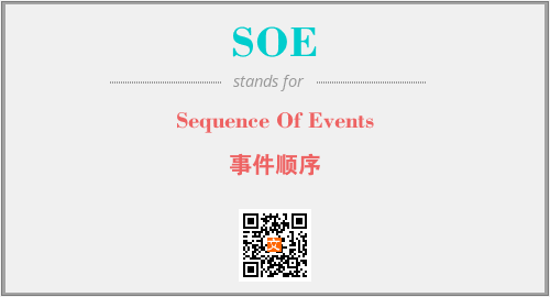 上述内容是“Sequence Of Events”作为“SOE”的缩写,解释为“事件顺序”时的信息,以及英文缩略词SOE所代表的英文单词,其对应的中文拼音、详细解释以及在英文中的流行度和相关分类、应用领域及应用示例等。