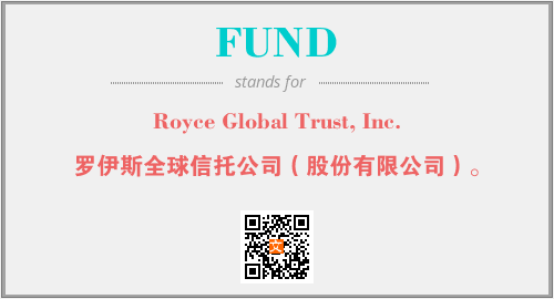 上述内容是“Royce Global Trust, Inc.”作为“FUND”的缩写,解释为“罗伊斯全球信托公司(股份有限公司)。”时的信息,以及英文缩略词FUND所代表的英文单词,其对应的中文拼音、详细解释以及在英文中的流行度和相关分类、应用领域及应用示例等。