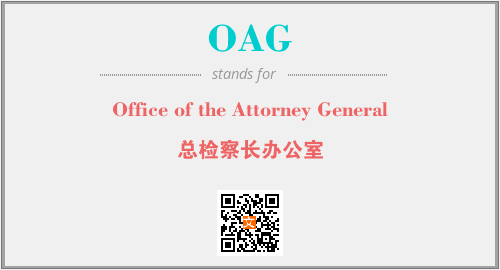 英文缩略词“OAG”经常作为“Office of the Attorney General”的英文缩写来使用,中文表示:“总检察长办公室”。本文将详细介绍英文缩写词OAG所代表英文单词,其对应的中文拼音、详细解释以及在英语中的流行度。此外,还有关于缩略词OAG的分类、应用领域及相关应用示例等。