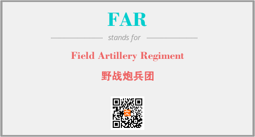 上述内容是“Field Artillery Regiment”作为“FAR”的缩写,解释为“野战炮兵团”时的信息,以及英文缩略词FAR所代表的英文单词,其对应的中文拼音、详细解释以及在英文中的流行度和相关分类、应用领域及应用示例等。