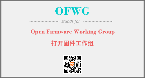 英文缩略词“OFWG”经常作为“Open Firmware Working Group”的英文缩写来使用,中文表示:“打开固件工作组”。本文将详细介绍英文缩写词OFWG所代表英文单词,其对应的中文拼音、详细解释以及在英语中的流行度。此外,还有关于缩略词OFWG的分类、应用领域及相关应用示例等。