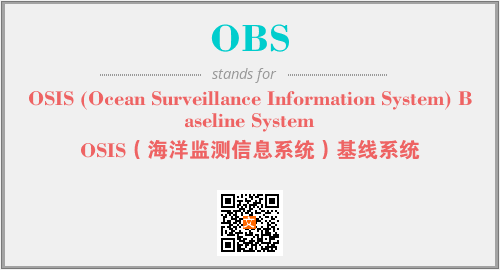 上述内容是“OSIS (Ocean Surveillance Information System) Baseline System”作为“OBS”的缩写,解释为“OSIS(海洋监测信息系统)基线系统”时的信息,以及英文缩略词OBS所代表的英文单词,其对应的中文拼音、详细解释以及在英文中的流行度和相关分类、应用领域及应用示例等。