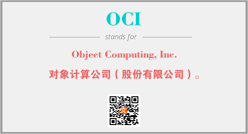上述内容是“Object Computing, Inc.”作为“OCI”的缩写,解释为“对象计算公司(股份有限公司)。”时的信息,以及英文缩略词OCI所代表的英文单词,其对应的中文拼音、详细解释以及在英文中的流行度和相关分类、应用领域及应用示例等。