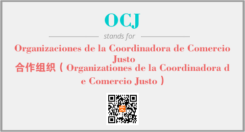 英文缩略词“OCJ”经常作为“Organizaciones de la Coordinadora de Comercio Justo”的英文缩写来使用,中文表示:“合作组织(Organizationes de la Coordinadora de Comercio Justo)”。本文将详细介绍英文缩写词OCJ所代表英文单词,其对应的中文拼音、详细解释以及在英语中的流行度。此外,还有关于缩略词OCJ的分类、应用领域及相关应用示例等。