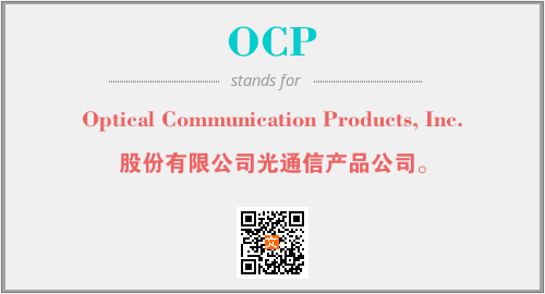 上述内容是“Optical Communication Products, Inc.”作为“OCP”的缩写,解释为“股份有限公司光通信产品公司。”时的信息,以及英文缩略词OCP所代表的英文单词,其对应的中文拼音、详细解释以及在英文中的流行度和相关分类、应用领域及应用示例等。