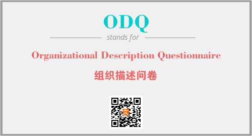 英文缩略词“ODQ”经常作为“Organizational Description Questionnaire”的英文缩写来使用,中文表示:“组织描述问卷”。本文将详细介绍英文缩写词ODQ所代表英文单词,其对应的中文拼音、详细解释以及在英语中的流行度。此外,还有关于缩略词ODQ的分类、应用领域及相关应用示例等。