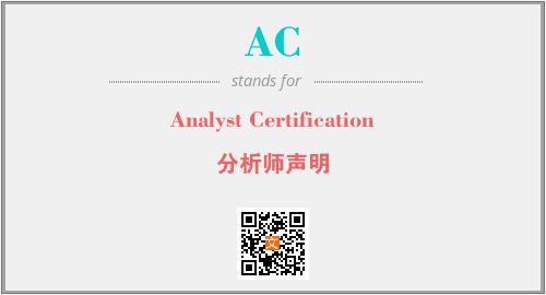 上述内容是“Analyst Certification”作为“AC”的缩写,解释为“分析师声明”时的信息,以及英文缩略词AC所代表的英文单词,其对应的中文拼音、详细解释以及在英文中的流行度和相关分类、应用领域及应用示例等。