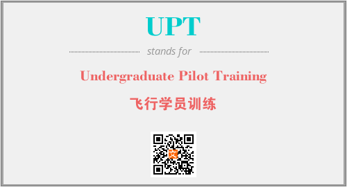 英文缩略词“UPT”经常作为“Undergraduate Pilot Training”的英文缩写来使用,中文表示:“飞行学员训练”。本文将详细介绍英文缩写词UPT所代表英文单词,其对应的中文拼音、详细解释以及在英语中的流行度。此外,还有关于缩略词UPT的分类、应用领域及相关应用示例等。