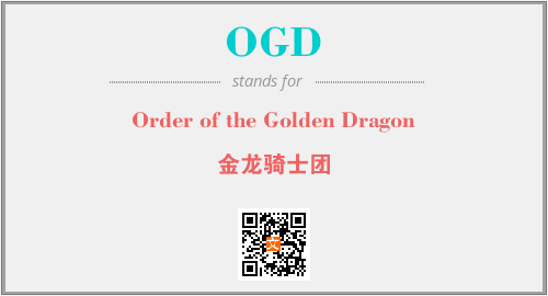 上述内容是“Order of the Golden Dragon”作为“OGD”的缩写,解释为“金龙骑士团”时的信息,以及英文缩略词OGD所代表的英文单词,其对应的中文拼音、详细解释以及在英文中的流行度和相关分类、应用领域及应用示例等。