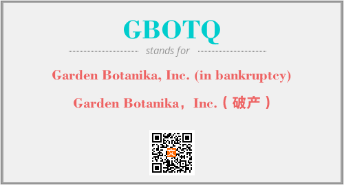 上述内容是“Garden Botanika, Inc. (in bankruptcy)”作为“GBOTQ”的缩写,解释为“Garden Botanika,Inc.(破产)”时的信息,以及英文缩略词GBOTQ所代表的英文单词,其对应的中文拼音、详细解释以及在英文中的流行度和相关分类、应用领域及应用示例等。