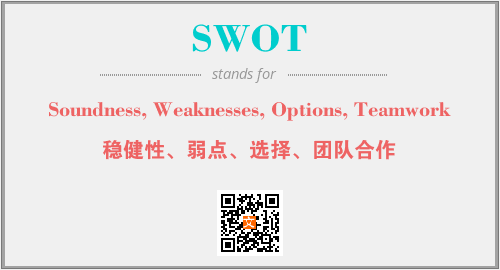以上为Soundness, Weaknesses, Options, Teamwork英文缩略词SWOT的中文解释,以及该英文缩写在英语的流行度、分类和应用领域方面的信息。