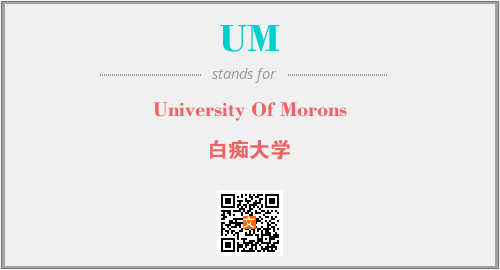 英文缩略词“UM”经常作为“University Of Morons”的英文缩写来使用,中文表示:“白痴大学”。本文将详细介绍英文缩写词UM所代表英文单词,其对应的中文拼音、详细解释以及在英语中的流行度。此外,还有关于缩略词UM的分类、应用领域及相关应用示例等。