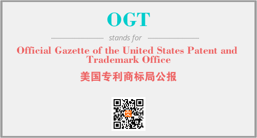 上述内容是“Official Gazette of the United States Patent and Trademark Office”作为“OGT”的缩写,解释为“美国专利商标局公报”时的信息,以及英文缩略词OGT所代表的英文单词,其对应的中文拼音、详细解释以及在英文中的流行度和相关分类、应用领域及应用示例等。