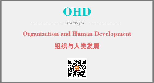 上述内容是“Organization and Human Development”作为“OHD”的缩写,解释为“组织与人类发展”时的信息,以及英文缩略词OHD所代表的英文单词,其对应的中文拼音、详细解释以及在英文中的流行度和相关分类、应用领域及应用示例等。