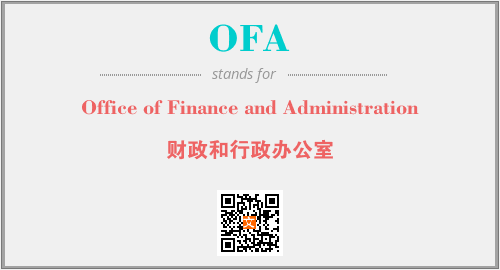 上述内容是“Office of Finance and Administration”作为“OFA”的缩写,解释为“财政和行政办公室”时的信息,以及英文缩略词OFA所代表的英文单词,其对应的中文拼音、详细解释以及在英文中的流行度和相关分类、应用领域及应用示例等。