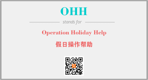 英文缩略词“OHH”经常作为“Operation Holiday Help”的英文缩写来使用,中文表示:“假日操作帮助”。本文将详细介绍英文缩写词OHH所代表英文单词,其对应的中文拼音、详细解释以及在英语中的流行度。此外,还有关于缩略词OHH的分类、应用领域及相关应用示例等。