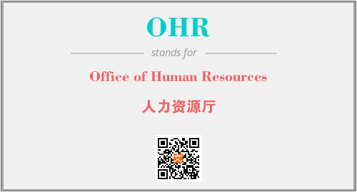 上述内容是“Office of Human Resources”作为“OHR”的缩写,解释为“人力资源厅”时的信息,以及英文缩略词OHR所代表的英文单词,其对应的中文拼音、详细解释以及在英文中的流行度和相关分类、应用领域及应用示例等。