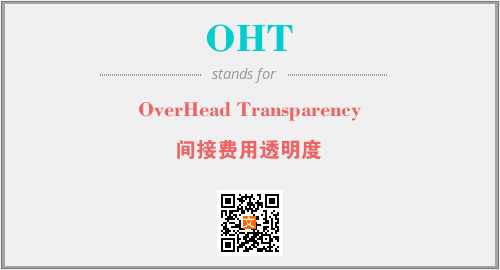 上述内容是“OverHead Transparency”作为“OHT”的缩写,解释为“间接费用透明度”时的信息,以及英文缩略词OHT所代表的英文单词,其对应的中文拼音、详细解释以及在英文中的流行度和相关分类、应用领域及应用示例等。