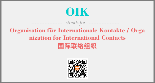 英文缩略词“OIK”经常作为“Organisation für Internationale Kontakte / Organization for International Contacts”的英文缩写来使用,中文表示:“国际联络组织”。本文将详细介绍英文缩写词OIK所代表英文单词,其对应的中文拼音、详细解释以及在英语中的流行度。此外,还有关于缩略词OIK的分类、应用领域及相关应用示例等。