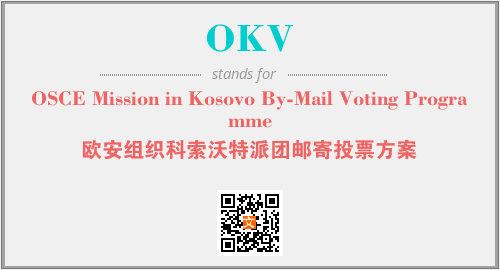 上述内容是“OSCE Mission in Kosovo By-Mail Voting Programme”作为“OKV”的缩写,解释为“欧安组织科索沃特派团邮寄投票方案”时的信息,以及英文缩略词OKV所代表的英文单词,其对应的中文拼音、详细解释以及在英文中的流行度和相关分类、应用领域及应用示例等。