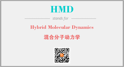 上述内容是“Hybrid Molecular Dynamics”作为“HMD”的缩写,解释为“混合分子动力学”时的信息,以及英文缩略词HMD所代表的英文单词,其对应的中文拼音、详细解释以及在英文中的流行度和相关分类、应用领域及应用示例等。