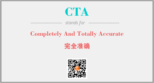 以上为Completely And Totally Accurate英文缩略词CTA的中文解释,以及该英文缩写在英语的流行度、分类和应用领域方面的信息。