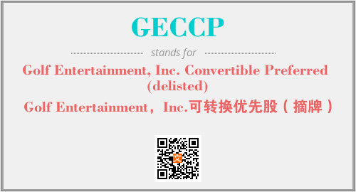 上述内容是“Golf Entertainment, Inc. Convertible Preferred (delisted)”作为“GECCP”的缩写,解释为“Golf Entertainment,Inc.可转换优先股(摘牌)”时的信息,以及英文缩略词GECCP所代表的英文单词,其对应的中文拼音、详细解释以及在英文中的流行度和相关分类、应用领域及应用示例等。