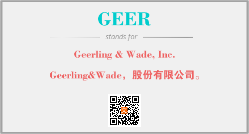 上述内容是“Geerling & Wade, Inc.”作为“GEER”的缩写,解释为“Geerling&Wade,股份有限公司。”时的信息,以及英文缩略词GEER所代表的英文单词,其对应的中文拼音、详细解释以及在英文中的流行度和相关分类、应用领域及应用示例等。