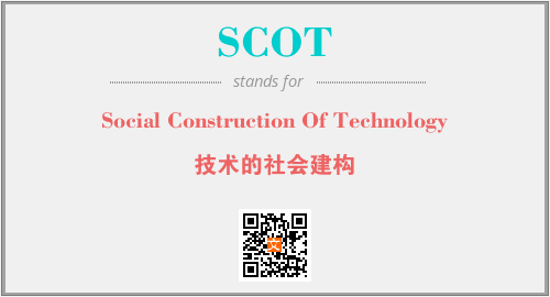 上述内容是“Social Construction Of Technology”作为“SCOT”的缩写,解释为“技术的社会建构”时的信息,以及英文缩略词SCOT所代表的英文单词,其对应的中文拼音、详细解释以及在英文中的流行度和相关分类、应用领域及应用示例等。