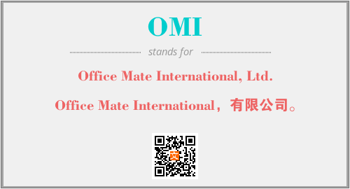 英文缩略词“OMI”经常作为“Office Mate International, Ltd.”的英文缩写来使用,中文表示:“Office Mate International,有限公司。”。本文将详细介绍英文缩写词OMI所代表英文单词,其对应的中文拼音、详细解释以及在英语中的流行度。此外,还有关于缩略词OMI的分类、应用领域及相关应用示例等。