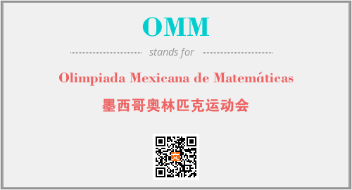 英文缩略词“OMM”经常作为“Olimpiada Mexicana de Matemáticas”的英文缩写来使用,中文表示:“墨西哥奥林匹克运动会”。本文将详细介绍英文缩写词OMM所代表英文单词,其对应的中文拼音、详细解释以及在英语中的流行度。此外,还有关于缩略词OMM的分类、应用领域及相关应用示例等。