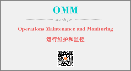 英文缩略词“OMM”经常作为“Operations Maintenance and Monitoring”的英文缩写来使用,中文表示:“运行维护和监控”。本文将详细介绍英文缩写词OMM所代表英文单词,其对应的中文拼音、详细解释以及在英语中的流行度。此外,还有关于缩略词OMM的分类、应用领域及相关应用示例等。