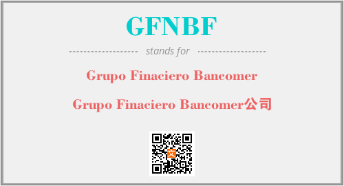 上述内容是“Grupo Finaciero Bancomer”作为“GFNBF”的缩写,解释为“Grupo Finaciero Bancomer公司”时的信息,以及英文缩略词GFNBF所代表的英文单词,其对应的中文拼音、详细解释以及在英文中的流行度和相关分类、应用领域及应用示例等。