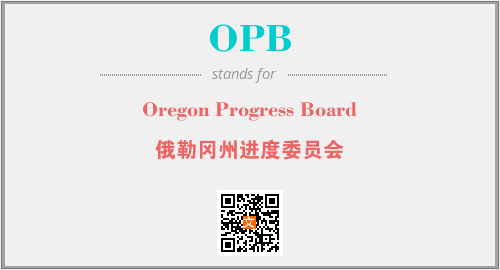上述内容是“Oregon Progress Board”作为“OPB”的缩写,解释为“俄勒冈州进度委员会”时的信息,以及英文缩略词OPB所代表的英文单词,其对应的中文拼音、详细解释以及在英文中的流行度和相关分类、应用领域及应用示例等。