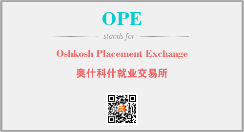 上述内容是“Oshkosh Placement Exchange”作为“OPE”的缩写,解释为“奥什科什就业交易所”时的信息,以及英文缩略词OPE所代表的英文单词,其对应的中文拼音、详细解释以及在英文中的流行度和相关分类、应用领域及应用示例等。