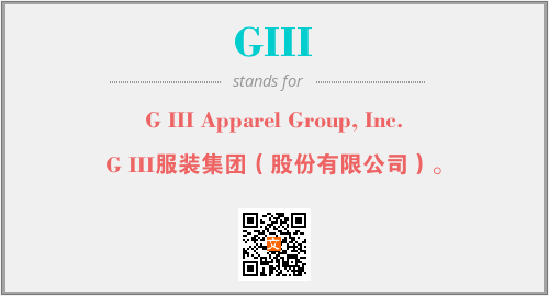 上述内容是“G III Apparel Group, Inc.”作为“GIII”的缩写,解释为“G III服装集团(股份有限公司)。”时的信息,以及英文缩略词GIII所代表的英文单词,其对应的中文拼音、详细解释以及在英文中的流行度和相关分类、应用领域及应用示例等。
