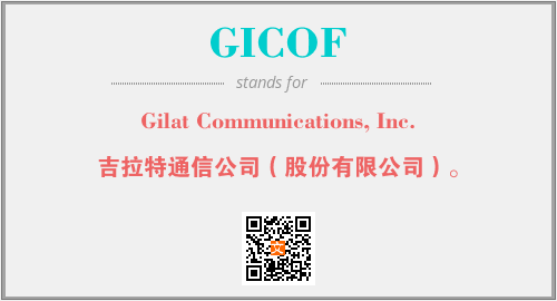 上述内容是“Gilat Communications, Inc.”作为“GICOF”的缩写,解释为“吉拉特通信公司(股份有限公司)。”时的信息,以及英文缩略词GICOF所代表的英文单词,其对应的中文拼音、详细解释以及在英文中的流行度和相关分类、应用领域及应用示例等。
